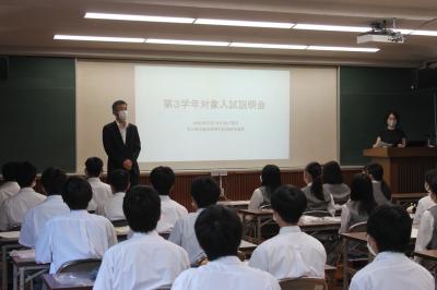 9月16日 7限目の時間に講義室にて、3年生対象の入試説明会が行われました。
