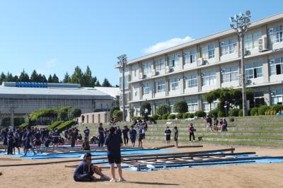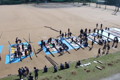 2021年9月21日 15時13分9月21日 午後より、全学年でデコレーション(体育祭応援用大看板)立てを行いました。