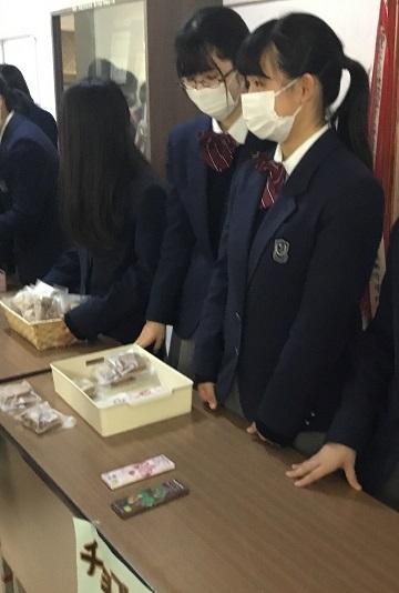 クッキーとチョコレートが販売されましたが、特に女子生徒に大好評であっという間に完売していました。販売係の生徒は商品と共にフェアトレードについての説明が書かれた紙もお客の生徒に渡し、フェアトレードについて知ってもらうよいきっかけとしていました。