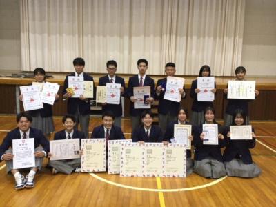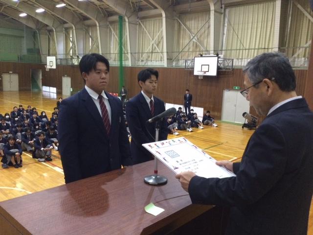 11月18日(月)、本校第一体育館にて新人大会等表彰伝達式が行われました!今年度の新人大会では、ウエイトリフティング部、相撲部、ソフトボール部が優勝・上位入賞を果たしてくれました!それに加えて、国民スポーツ大会でのウエイトリフティング部の活躍、優秀選手賞に輝いた野球部、女子ソフトテニス部の石川県ランキングでの入賞、石川県学生写真コンクールでの入賞、伊藤園お~いお茶新俳句大賞での入賞に対する表彰も行われました。受賞された生徒の皆さん、おめでとうございます!