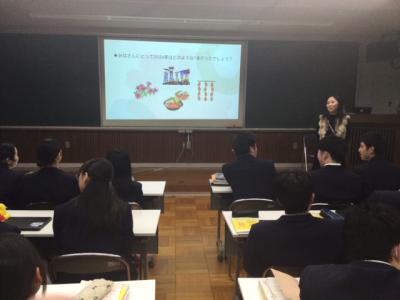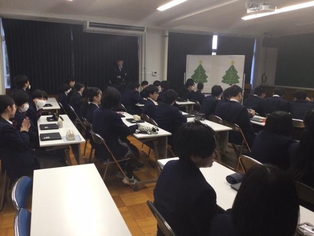 12月19日(木)、今年度より本校にてスクールカウンセラーとして勤務していただいている藤森圭子さんに、「今、私たちにできること ~この1年間を振り返って~」というテーマで講演会をしていただきました。今年1月の震災からもう少しで1年という節目を迎えるにあたって、震災から学んだこと、得られた経験、震災のことを思い出して不安そうな人がいたらどのような対応をするか、2025年の目標や希望についてペアワークなどを通して考えることができました。藤森さん、誠にありがとうございました。