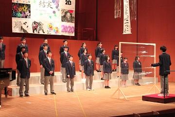 生徒たちは夏休みから地道に練習を重ね、その成果を精一杯発揮していました。最優秀賞には3Cクラスが選ばれ、表彰後担任と副担任を加えて再び舞台に立ち、素晴らしい合唱を披露しました。