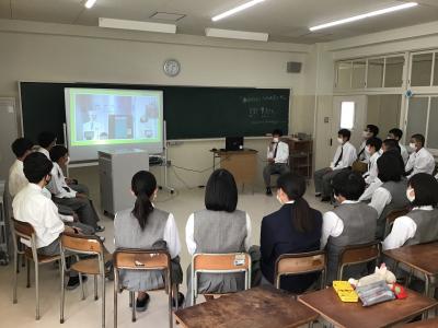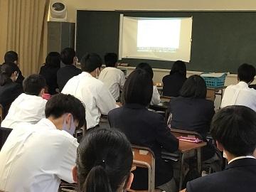 今年度については、講演会は外部業者にあらかじめ連絡をし、ライブ配信や事前に録画した動画を視聴する形で実施しました。生徒は4年制大学進学志望者とその他の進学志望及び就職志望者に分かれ、4つの会場に分かれそれぞれ視聴しました。講演では入試の仕組みや流れ、就職に向けた勉強の心構えなど、それぞれの志望に応じた内容となっていました。講演後さっそく勉強にさらに力を入れたと話す生徒もおり、有意義な講演会となりました。
