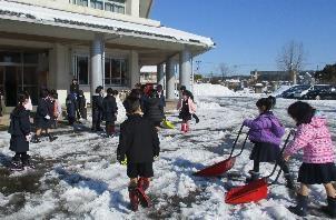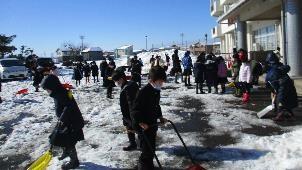 昨日19日(火)と今日20日(水)の長休みに,除雪ボランティアを募集しました。すると,19日は2・4・6年生が50名以上,20日は1・3・5年生が60名以上,児童玄関前に来てくれました(なわとび運動をしている学年は来られませんでした)。