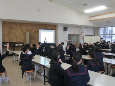2月2日、学校薬剤師の小泉花織さんにお越しいただき、薬物乱用防止教室を実施しました。