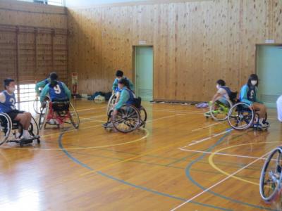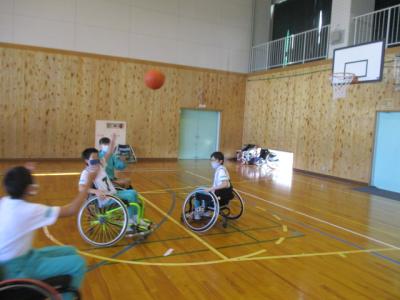 また、生活用の車椅子とバスケットボール用の車椅子の違いを教えていただいた後、北野さんには車椅子バスケットボールの仕方を教えていただきました。最初は車椅子操作に戸惑っていたいましたが、だんだん慣れ、鬼ごっこやバスケットボールの試合を楽しみました。