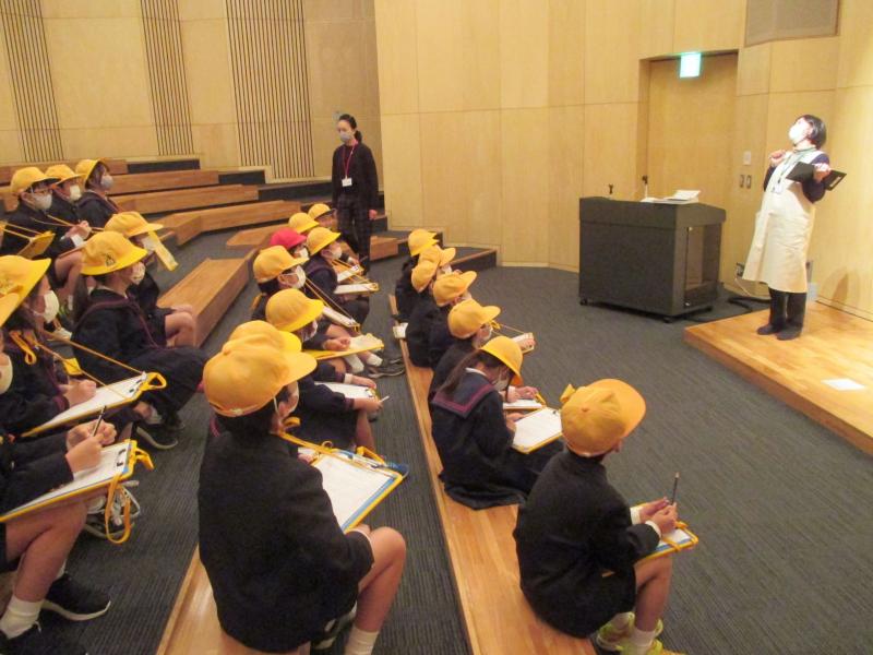 シグナスでは、そこで働く職員の方に案内してもらいました。普段なら入ることのできないステージ裏や楽屋などに案内してもらい、子供たちも興味津々でした。また、教えていただいたことを一生懸命メモしました。