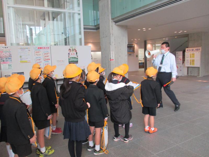 生活科「もっと行きたいな町たんけん」で、公共施設について学習しています。そこで、「公共施設は誰でも使えるが、誰にとっても使いやすい工夫は何か」を調べるために、子供たちにとって身近な公共施設であるシグナスに行くことになりました。