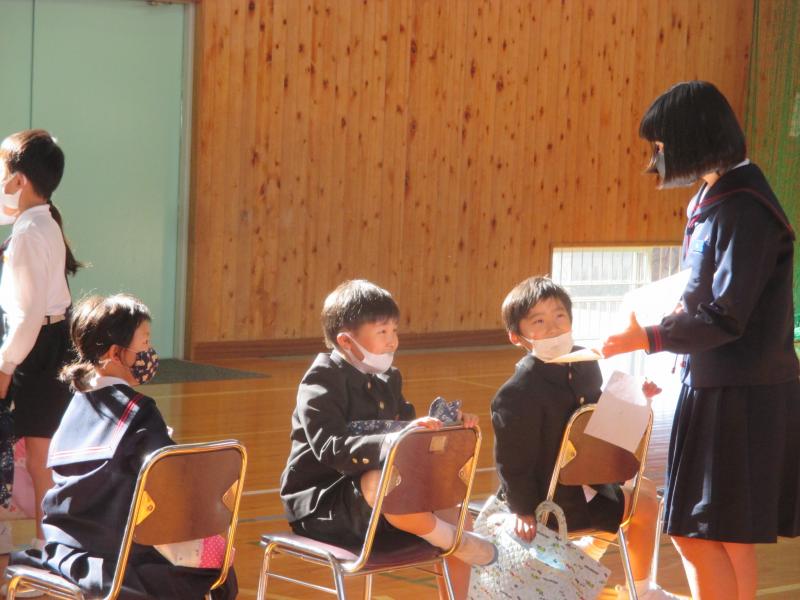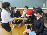 最後はプレゼント交換をしました。おひさま学級の児童は、4年生にクリスマスカードをプレゼントし、4年生は、折り紙で作ったサンタや手作り絵本をプレゼントしました。一生懸命作ったプレゼントを喜んでもらえて、お互いに嬉しそうでした。