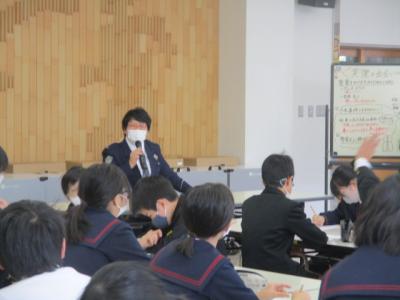 生徒指導担当は,1月の生活目標「マイベストあいさつパートⅡ」について話し,パートⅠよりもレベルアップすることを目標に頑張ることを伝えました。また,全校で気持ちをを合わせてあいさつをできるように「おはようございます」「こんにちは」「さようなら」とあいさつをする時間の目安を知らせました。