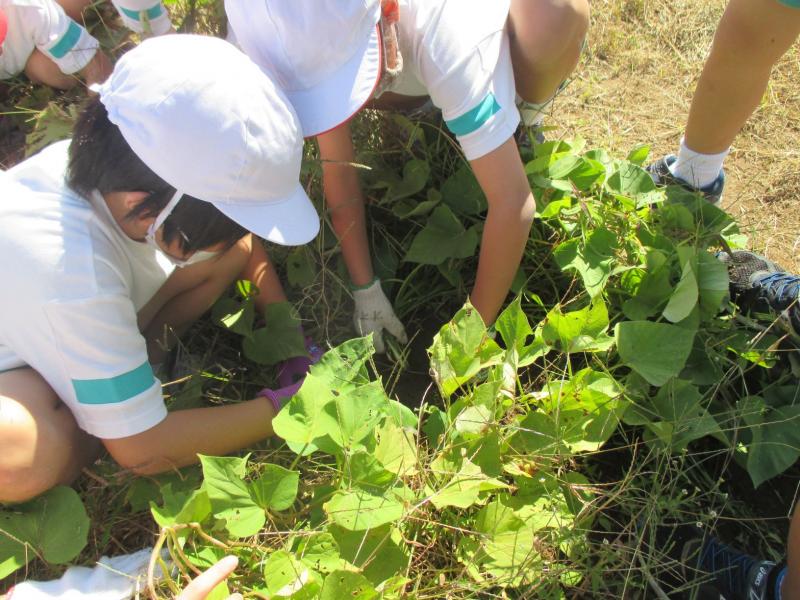 子供たちは、自分たちで水やりや草むしりをして育てたさつまいもを傷付けないように丁寧に掘りました。