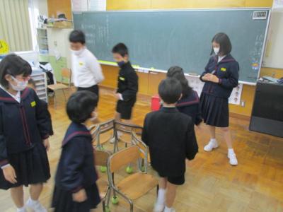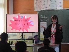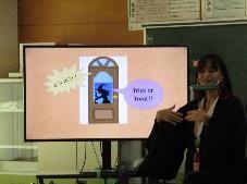 ハロウィンの意味や何をするのか等を簡単に紹介した後で,プレゼンを用いてハロウィンのクイズを出してくれました。子供たちはハロウィンを通して楽しみながら英語を学ぶことができたようです。
