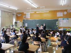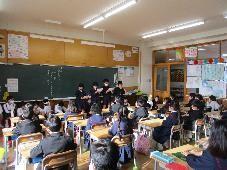 2年生は,緊張しながらもそれぞれの役になり切り一生懸命演技をしました。1年生はその姿を真剣に見つめ,拍手を送ったり質問をしたりしました。