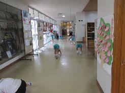 先週までは,当番の子達が頑張って綺麗にしてくれていたのですが,全員で行う掃除はやはりパワーが違いました。久しぶりに床を水拭きすると,何となく白っぽかった床が,本来の色を取り戻しました。
