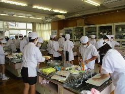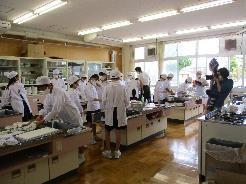 ↑ 6年生が調理実習を行いました。身支度を整え,役割分担と協力をして,ジャーマンポテトを作りました。活気に満ちた家庭室は久しぶりです。卒業アルバムのカメラマンが何枚も撮影していました。