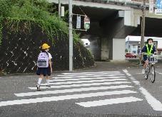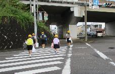 学校近くの4箇所で,職員が子供達の横断の様子を見たり挨拶をしたりしています。どの場所でもルールを守って渡る姿が見られ,中には,止まってくれた運転手に「ありがとう」と言う子,手を挙げて渡る子がいました。