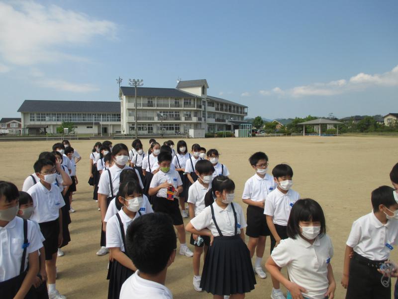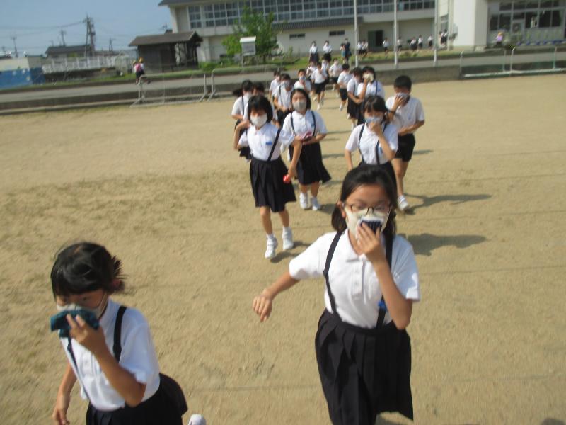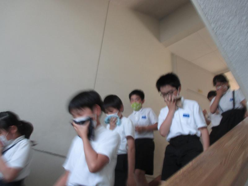 今年度初めての避難訓練は、密になることを避けるため、各学年ごとに行いました。火災の時はどのように避難するのか「お・あ・し・す・も」を意識して取り組むことができました。