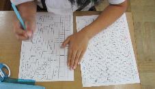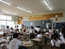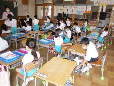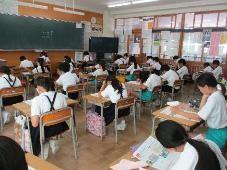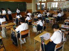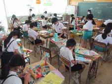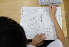 3年生の教室では,「楽しい夏休み」のプリントを見て,夏休みの過ごし方を確かめていました。 4年生の図工「コロコロガーレ」では,ビー玉を転がす楽しい世界を作り,完成間近でした。 5年生は,国語のテストをしていました。習ったはずの漢字を思い出そうと奮闘している子もいました。