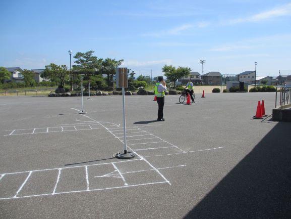 次に,交差点などでは一旦停止して右左の確認をすることなど,実際の場面で交通のきまりを学びました。発進するときに必ず左側から乗ることや,後方を確認してから発進することを初めて知った子が多くいました。