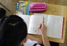 26日(金)の朝自習は「井上っ子作文」でした。前の週に子供たちが書いた文章を担任が見,修正部分に印などを付けて返しました。子供たちはそれを見て丁寧な文字で清書していました。