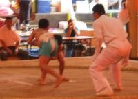 掛けました。液体ワックスを床に撒く子,それをモップで伸ばす子に