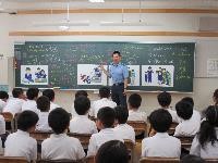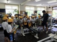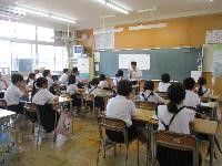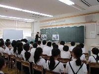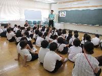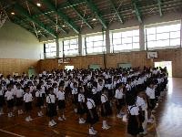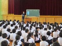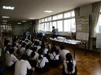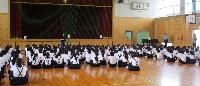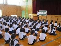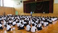 続けて,体育館にて津幡警察署の警察官の話を聞き,学校以外の