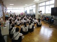 お話をしてくださいました。合間には2年生にふさわしい指遊びや