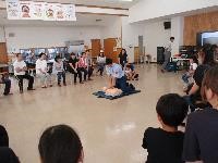 児童玄関では角井外喜雄様をお招きしてまわしの付け方を練習しま