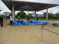 校庭にある土俵の形を整えたりブルーシートを変えたりしました。