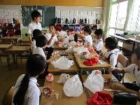 給食から掃除の時間を使い,縦割りグループ「なかよし班」での