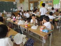 普段とは違う場所・違うメンバーでの給食であったためか,始まりは