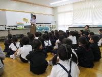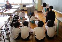 している4年生(社会),ボランティアの皆さんのお話を聞いている