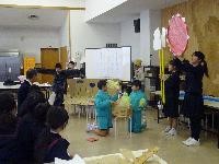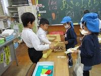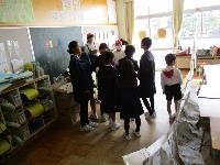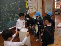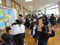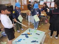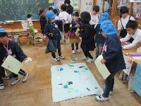 1年生が,生活科「たのしもう あき」の学習の一環として,井上保育園の年長さんを迎え秋祭りを行いました。自分たちが見付けた「あき」で物を作ったりゲームをしたりクイズをしたりして,年長さんに楽しんでもらえるよう頑張りました。4月に比べると体も心も成長した1年生ですが,この秋祭りで更に成長し,年長さんのお兄さんお姉さんとして活動しました。