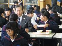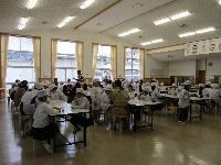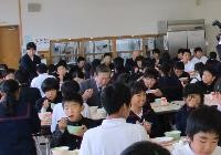 今日は「津幡献立の日」。津幡町の特産品である「まこも」を使った炊き込みご飯をいただきました。そして,それを矢田富郎町長さんやJAの方と共に味わう「ふれあい給食の日」でもありました。矢田町長さんにもランチルームの席に着いていただき,子供たちと給食を召し上がっていただきました。町長さんは近くの4年生や6年生と気さくに話をされ,普段とは違ったランチタイムを過ごされたようです。子供たちにとっても大変楽しい時間となりました。