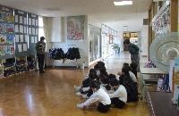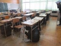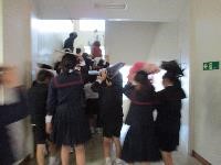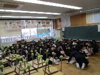 地震とその後の津波を想定した避難訓練を行いました。初めに各学級でDVDを視聴し,災害の様子と避難の仕方を確認しました。次に,地震発生時の避難をし(机の下に体を入れる),続いて発生した津波に対する避難を行いました。全員が頭を守りながら3階に移動し,6年生の2教室とワークスペースに無事集合しました。前回より一層真剣な避難訓練になりました。。