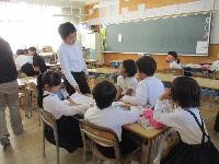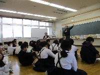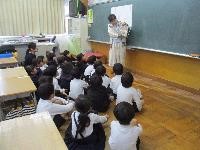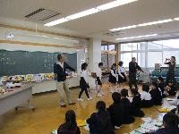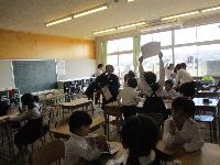 3年生が総合的な学習の時間「井上の〇〇名人を探せ!」にて,「川尻ちょんがり」に大変お詳しい中島さんと田賀さんをお招きしました。中島さんには,歴史,楽器とリズム,踊りと楽器の動きなど多くを教えていただきました。田賀さんには,歌の旋律やリズムを教えていただき,何度も歌っていただきました。お二人揃って歌に合わせて拍子木と太鼓を打ちながら動くお姿には,子供たちも釘付けになりました。