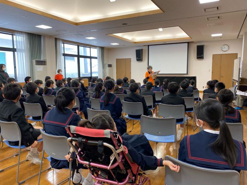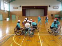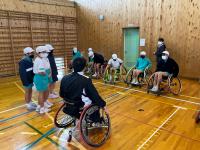 12月2日(木)は,「Jamaney 石川」に所属している岩崎大輔さんと清水大葵さんをお招きして,車椅子バスケットボールを体験したり,車椅子での生活や思いについてお話を聞いたりしました。