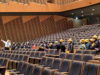 12月3日(金)には,津幡町の公共施設の中にあるバリアフリーやユニバーサルデザインの設備を見つけるために,町役場,シグナス,中央公園,アルプラザへ見学に行きました。