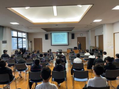 12月16日(木)に井上校区にお住いの芝田悟さんをお招きして「子ども郷土史講座」を開きました。河北潟の歴史や津幡町の水害についてお話をしていただき,河北潟の変遷や埋め立て・干拓による生活の変化,昭和の水害の被害の様子などを学びました。
