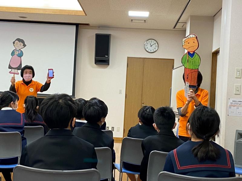 認知症とはだれがいつなるか分からない病気であること,もし家族が認知症になった時にどのように接したらよいのか等について,サポーターブックや人形劇を通して学びました。