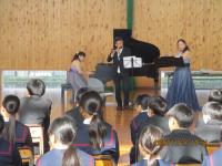音楽鑑賞会がありました 2025年12月10日 14時33分 4年生から6年生を対象として、音楽鑑賞会をしました。音楽の授業を担当している大谷先生のご厚意によって3名のゲストと児童の演奏や歌で会を作りました。しっとりとした雰囲気で温かい気持ちになった一時間でした。
