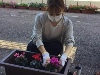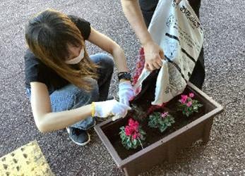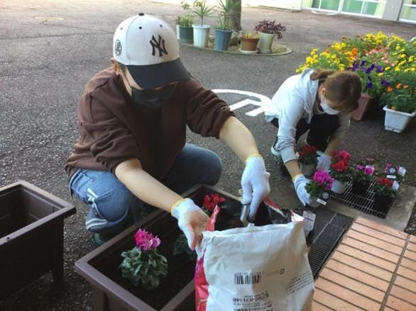 創立50周年記念式典に向けて、育友会でシクラメンを植えていただきました。