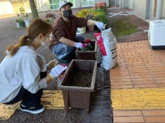 先日津幡高校から届いたプランターの整備もしていただけました。