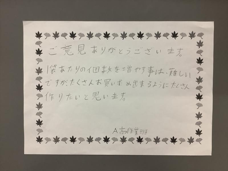 お客様からの貴重なご意見を、今後の作業製品販売に活かしていきたいと思います。