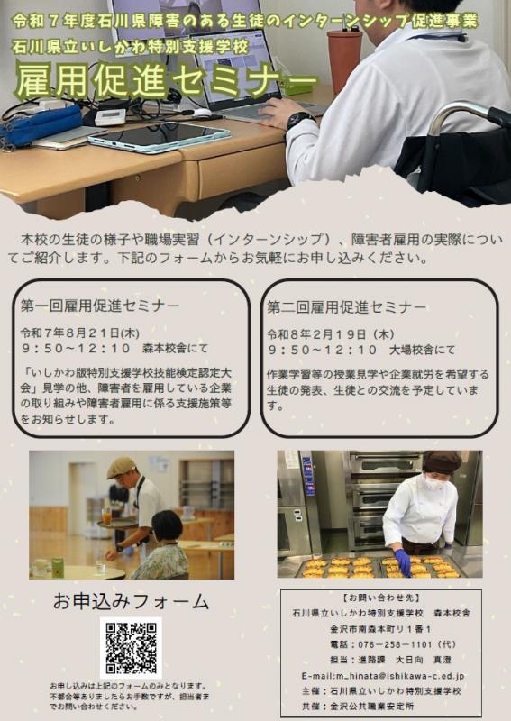 令和7年度石川県障害のある生徒のインターンシップ促進事業 石川県立いしかわ特別支援学校 雇用促進セミナー