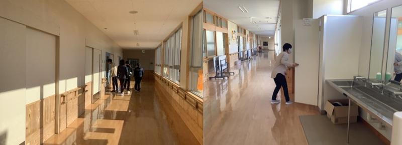 児童生徒は、洪水発生時に放送で情報を確認し、1階から2階に避難することや洪水が収まるまで備蓄リュックの食糧等を利用しながら落ち着いて待機すること等を学びました。