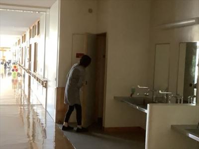 自主通学の生徒Aさんが帰宅時間になっても家に帰ってこないという保護者連絡があったという想定のもと、緊急捜索訓練を行いました。教員が生徒役をし、実際に見つかるまで校舎内校地内の捜索を行いました。
