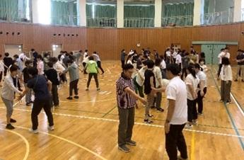 今回は、緊急時の指示を聞き行動することをねらい、急遽大体育館への避難にしました。実際に、怪我人が出た時の対応や医療的ケアが必要な児童生徒を看護師と連携して避難する動き等を確認しながら行いました。
