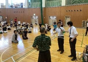 金沢東警察署員の方から、護身術を教わり実際に体験しています。