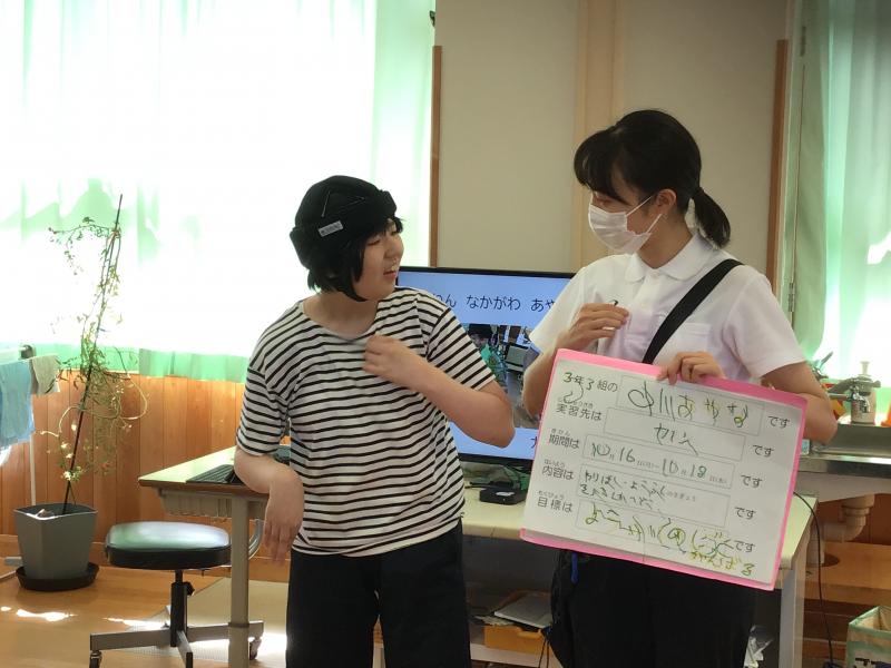 2023年10月23日 15時35分 [サクラ]肢体不自由教育部門高等部では、10月16日(月)から後期の職場実習が始まりました。3年生にとっては、卒業後の進路に向けた「まとめ」の実習ということもあり、生徒一人一人が実習に向けて真剣に目標を立てました。